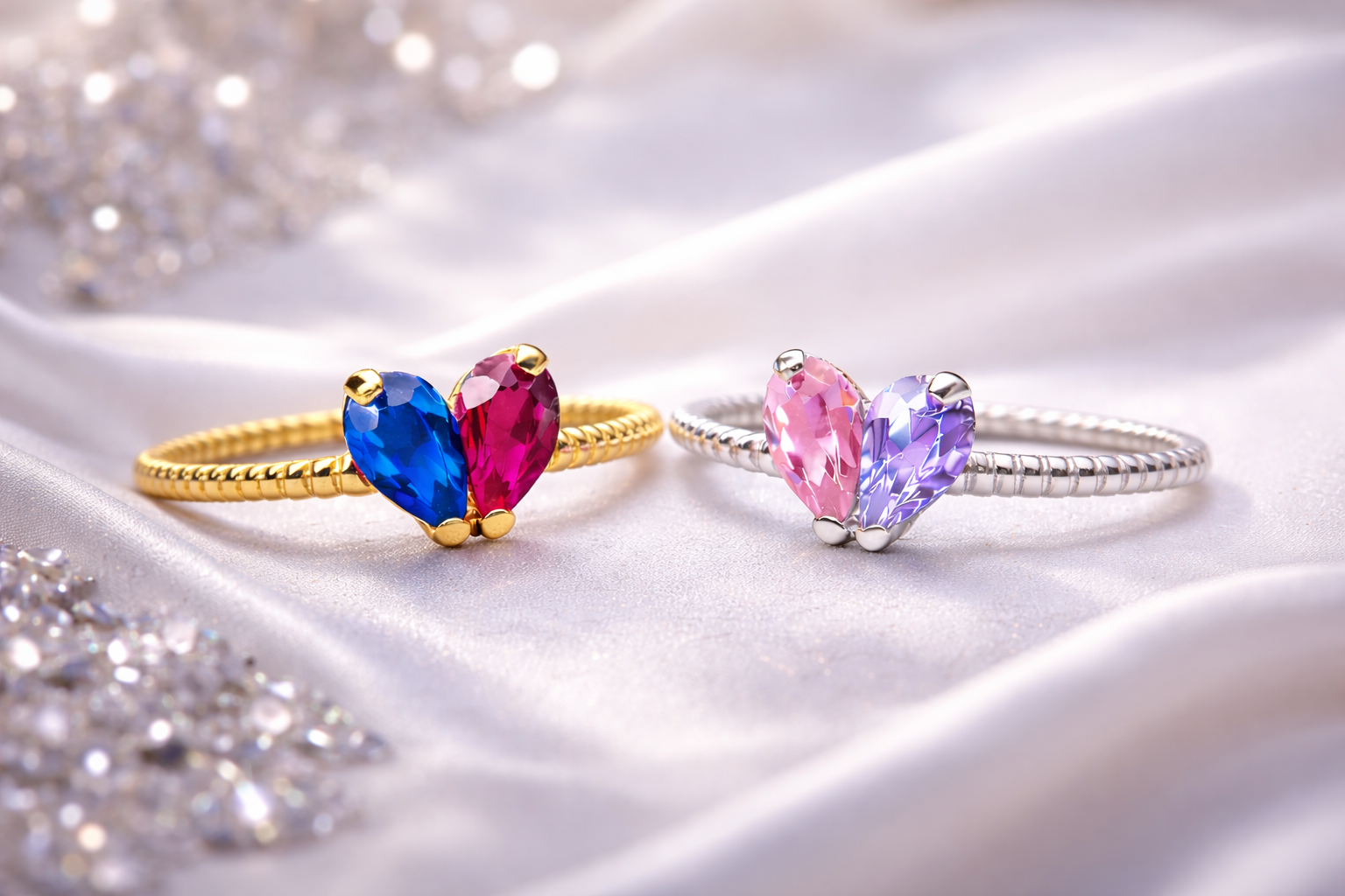 ANELLO CUORE - PERSONALIZZATO CON PIETRA MESE di NASCITA